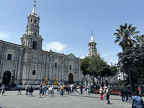 Rund 1000 km südöstlich von Lima liegt eine der schönsten Städte zu Füßen des 5822 m hohen Vulkans Misti.